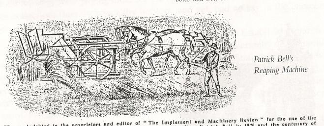 Rev Patrick Bell is most noted for his invention of the reaping machine. When